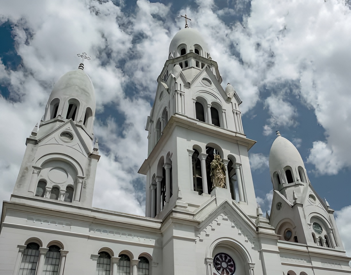 La primera de ellas fue proyectada por Eduardo Taylor, en reemplazo de la vieja capilla castrense, y la actual por el ingeniero Henry Hunt, ambos profesionales de origen británico. El tercer templo se alineó en su frente con la antigua muralla y foso, mientras que la nave quedó inscripta dentro del desaparecido recinto del fuerte. Cuando en 1969 se reforma la fachada de estilo Neorrenacimiento por otra de inspiración neobizantina –para alojar un carrillón de 10 campanas– se desvirtuó parte de la armonía del estupendo conjunto monumental integrado por el Palacio Municipal, el Banco Hipotecario y la Escuela Nº 1.