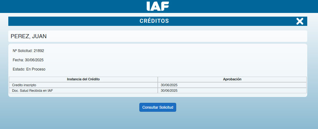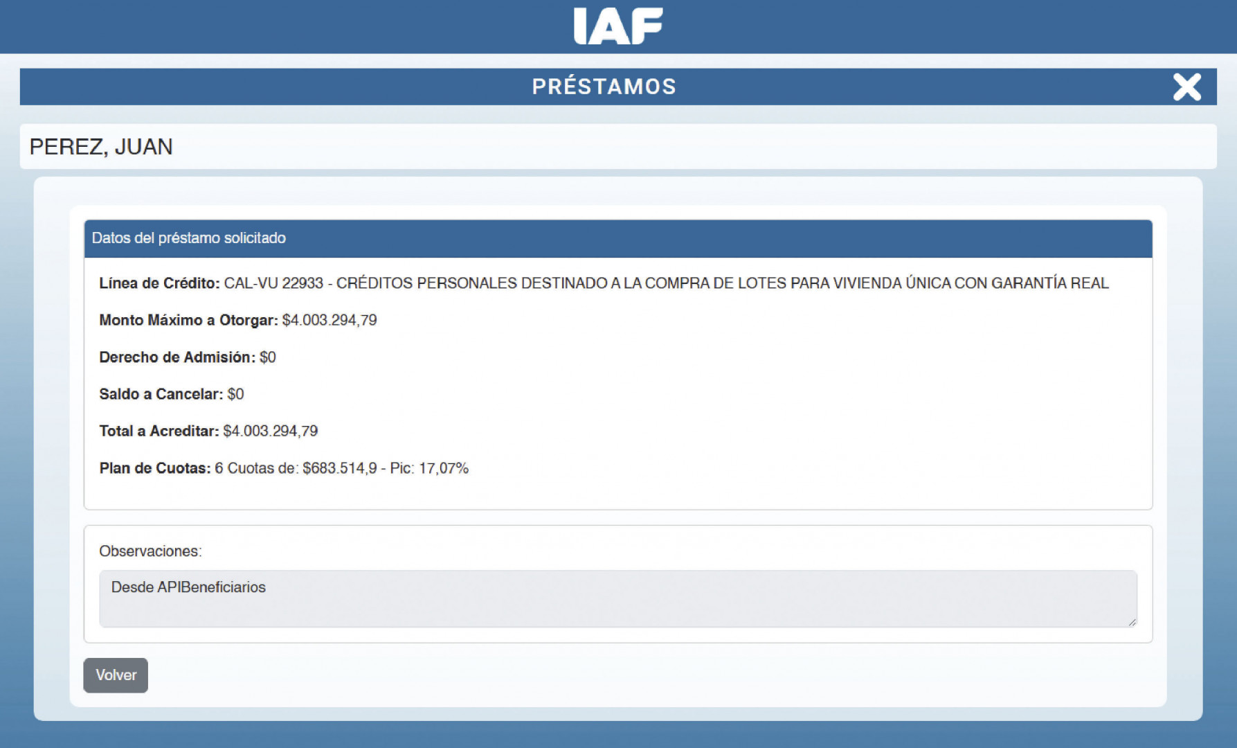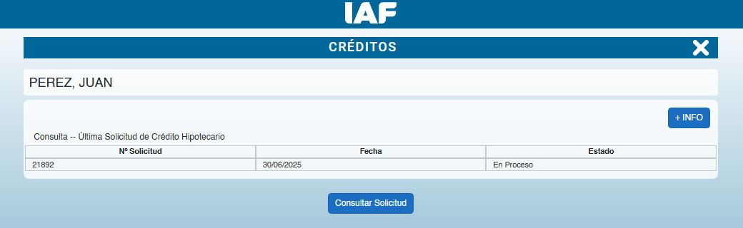 13) Al presionar Consultar Solicitud podés ver los datos del Crédito y en el campo Observaciones las novedades sobre la solicitud.
