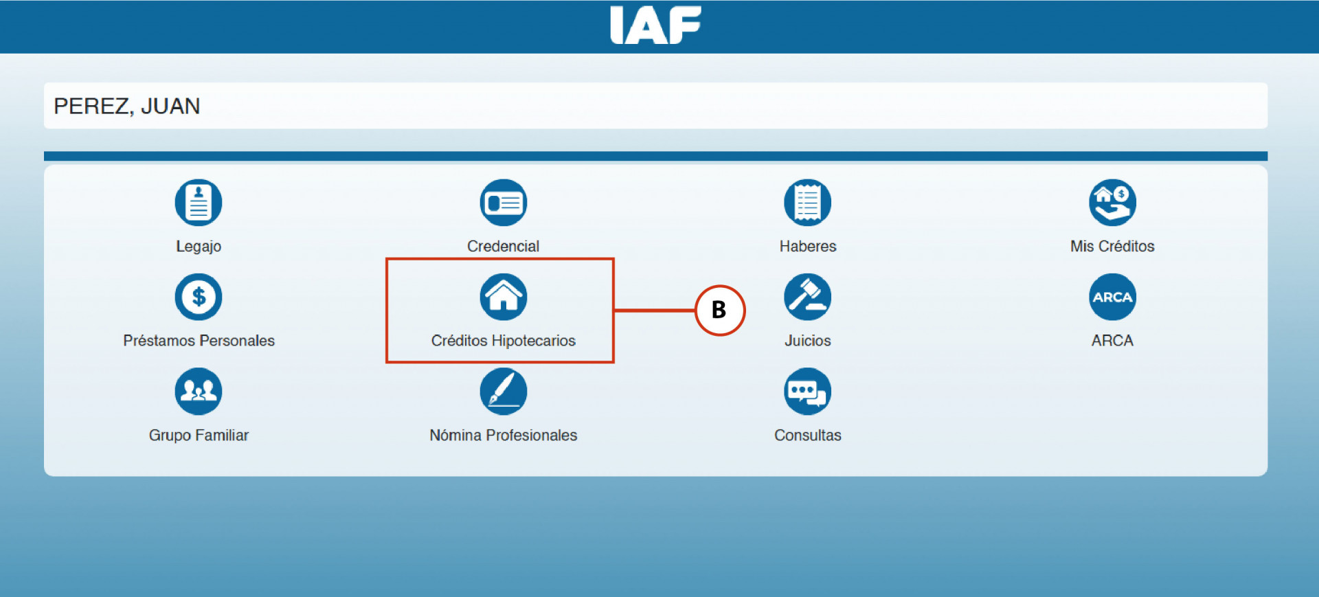 3) Presioná el ícono “Créditos Hipotecarios” (B)
