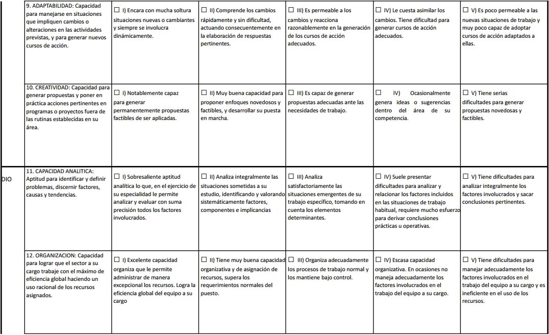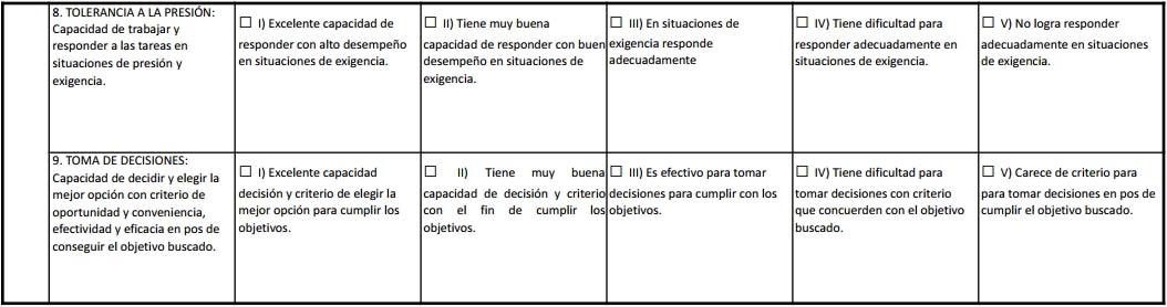 d) DESEMPEÑO DEFICIENTE: cuando no alcanza a cubrir los requerimientos de la función y obtiene resultados muy por debajo de lo normal.