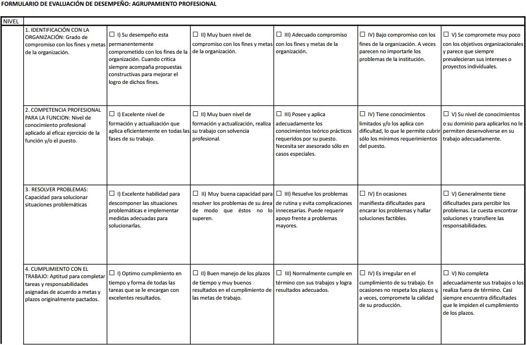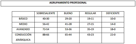 1) AGRUPAMIENTO PROFESIONAL: Serán evaluados en este grupo los agentes que se encuentran encuadrados en el agrupamiento PROFESIONAL: Básico, Medio, Avanzado y el personal con Conducción Jerárquica, independientemente del agrupamiento al cual pertenezcan;