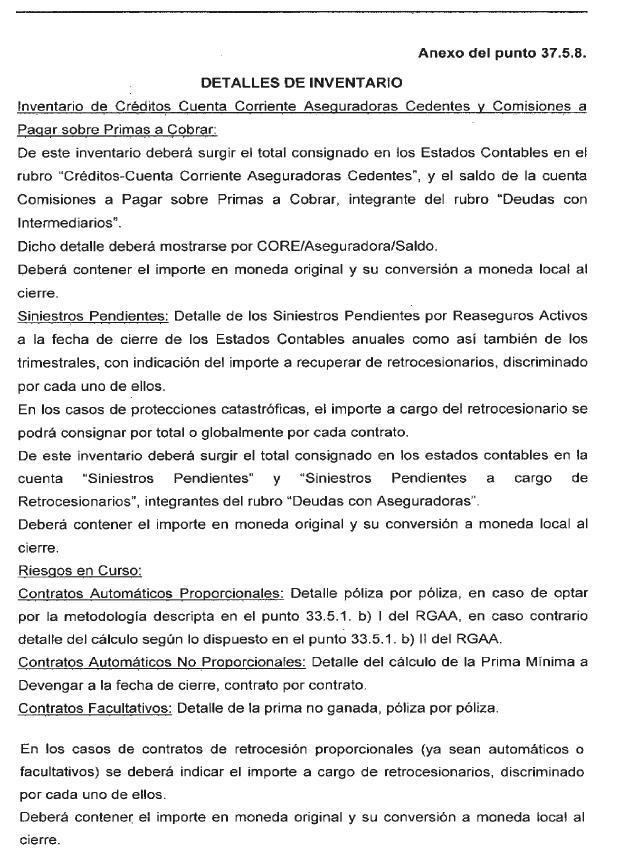 (DENOMINACIÓN “ANEXO DEL PUNTO 37.5.8.” sustituida por la de “ANEXO DEL PUNTO 37.5.4.”, por art. 5° de la Resolución Sintetizada N° 1025/2019 de la Superintendencia de Seguros de la Nación B.O. 12/11/2019. DE APLICACIÓN RESPECTO DE LOS ESTADOS CONTABLES INTERMEDIOS CERRADOS AL 30 DE SEPTIEMBRE DE 2019 Y SUBSIGUIENTES.)