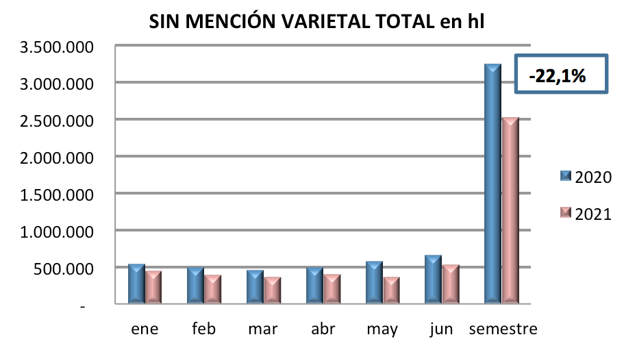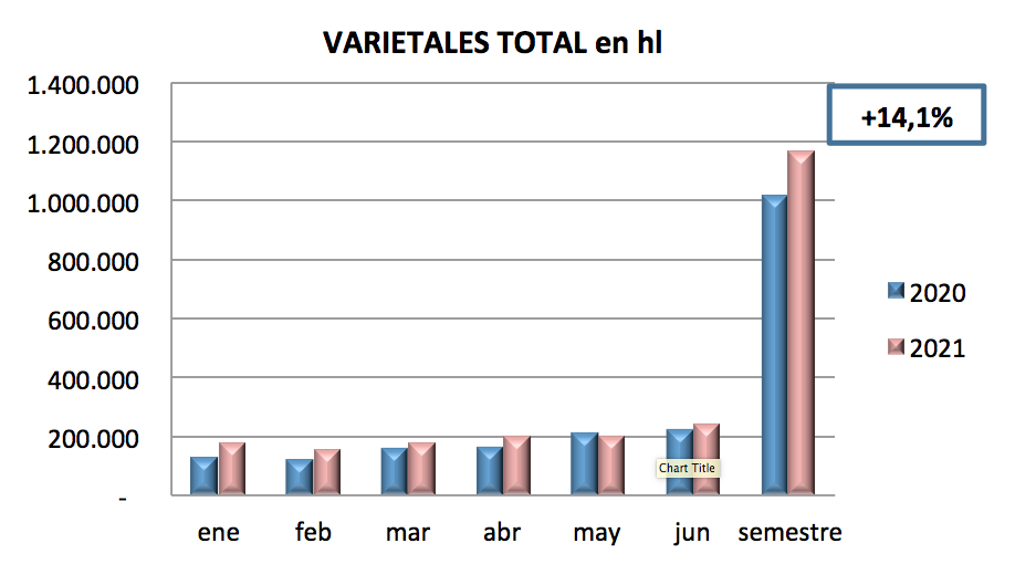 Con el cierre del dato de junio 2021 que arrojó una baja del 11,6% vs junio 2020 en los despachos totales de vinos, el primer semestre del año acumuló una disminución en volumen del 12,2%.