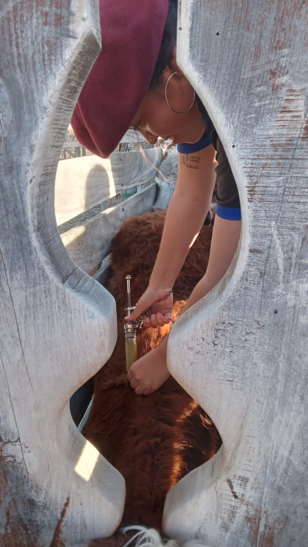 Las y los estudiantes trabajaron en grupos de tres personas en guardias de seis horas en las parideras. Esta práctica tiene como objetivo garantizar el bienestar animal, poder evitar la mortandad perinatal y observar el comportamiento materno. También trabajaron con bovinos aplicando caravanas y vacunas.