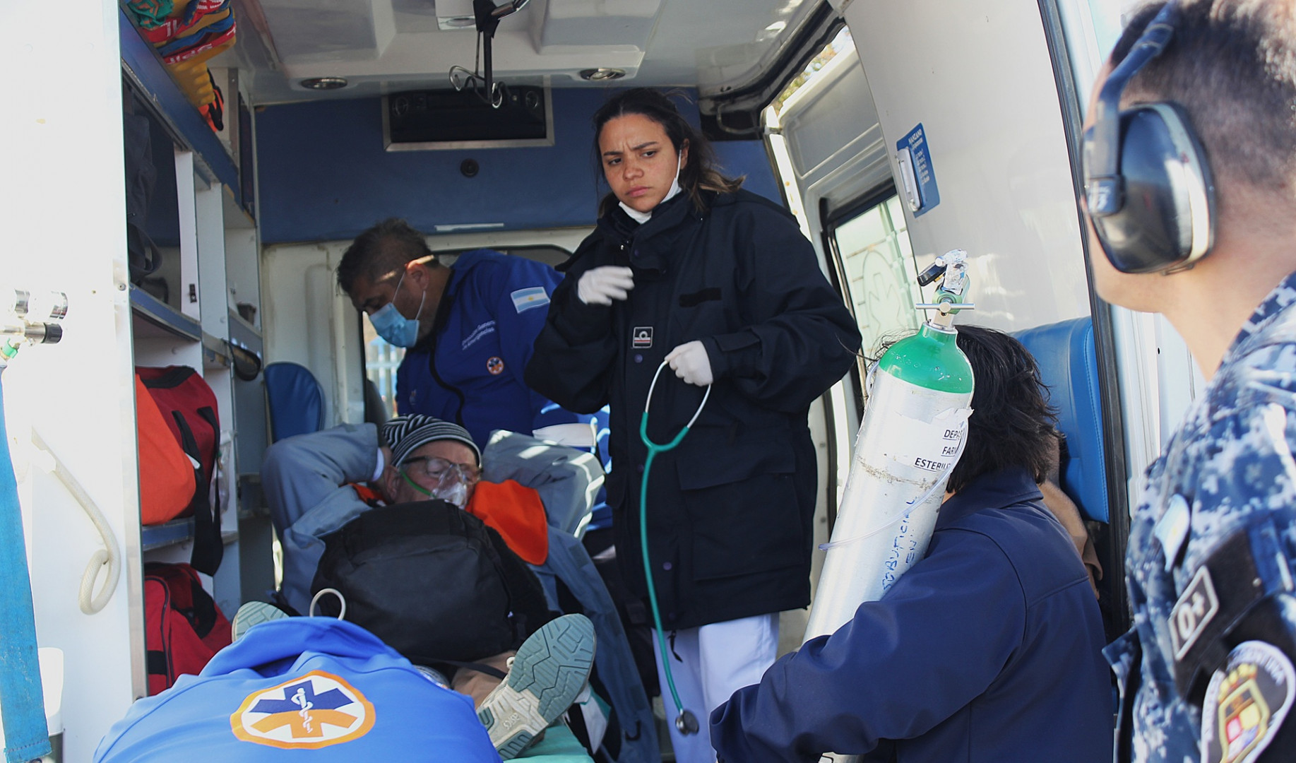 Simultáneamente, en el hangar de vuelo de la Base Naval Ushuaia ubicada en el Anexo Península aguardaba una ambulancia del Hospital Regional de la ciudad fueguina, lista para brindar la asistencia sanitaria del paciente.