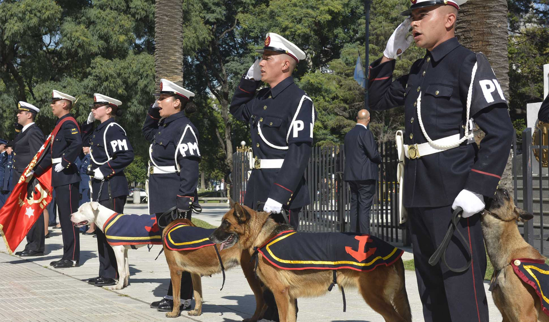 Buenos Aires – Esta tarde, en la Plaza de Armas del Edificio Libertador, se llevó a cabo un homenaje a los binomios —integrados por guías militares y perros— de la Agrupación Perros de Guerra (APPG), perteneciente al Batallón de Seguridad de la Base Naval Puerto Belgrano (BISP), que actuaron con honor y valentía durante la Guerra de Malvinas.