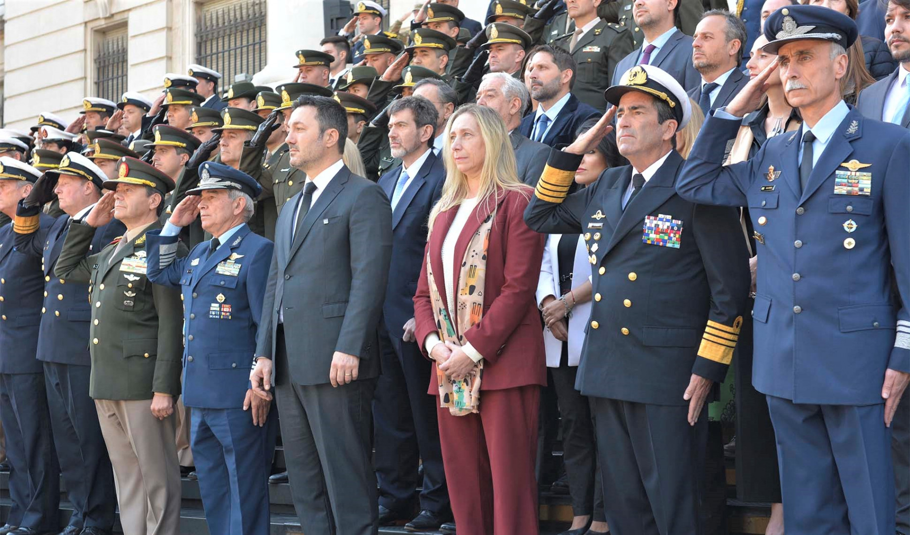 La ceremonia fue presidida por el Ministro de Defensa, Dr. Luis Alfonso Petri, quien estuvo acompañado por la Secretaria General de la Presidencia de la Nación, Lic. Karina Milei. Estuvieron presentes además el Jefe del Estado Mayor Conjunto de las Fuerzas Armadas, Brigadier General Xavier Julián Isaac; el Jefe del Estado Mayor General de la Armada, Almirante Carlos María Allievi; el Jefe del Estado Mayor General del Ejército Argentino, Teniente General Carlos Alberto Presti; y el Jefe del Estado Mayor General de la Fuerza Aérea, Brigadier Gustavo Javier Valverde.