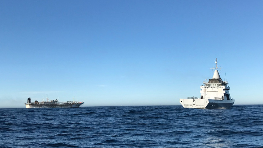 El buque infractor que operaba ilegalmente en la Zona Económica Exclusiva Argentina, intentó evadir al buque de la Armada Argentina, que luego de una persecución logró que detuviera su marcha.