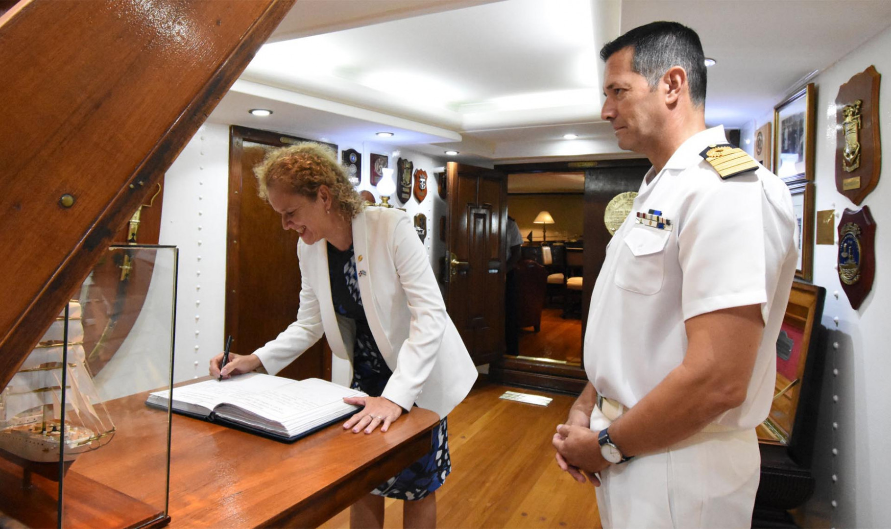 Luego de la ceremonia de bienvenida, el Comandante de la fragata fue recibido por el Comandante General de la Armada de República Dominicana, Vicealmirante Juan Bienvenido Crisóstomo Martínez, quien se mostró muy conmovido por la presencia de la “Libertad”, puesto que su hijo realizó en ella el Viaje de Instrucción, luego de cursar en la Escuela Naval Militar de la Armada Argentina en el marco de un intercambio.