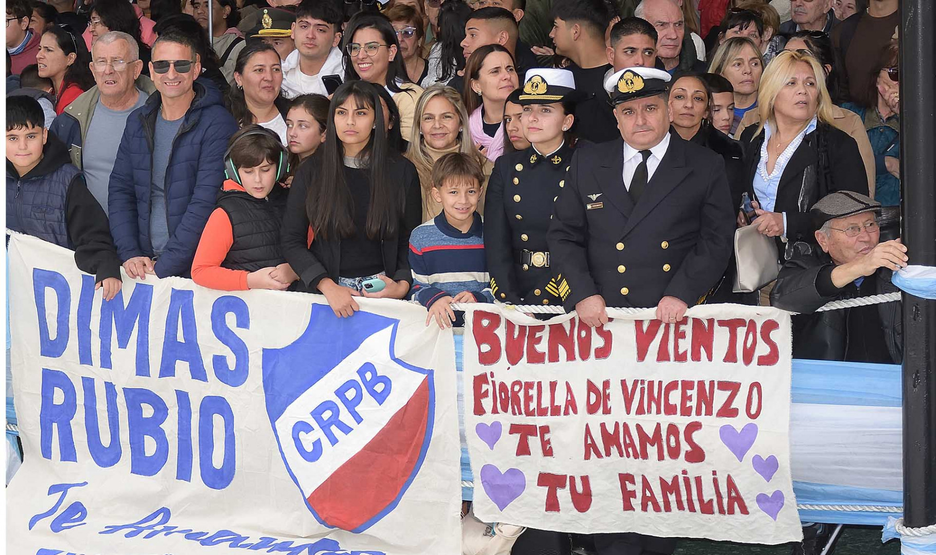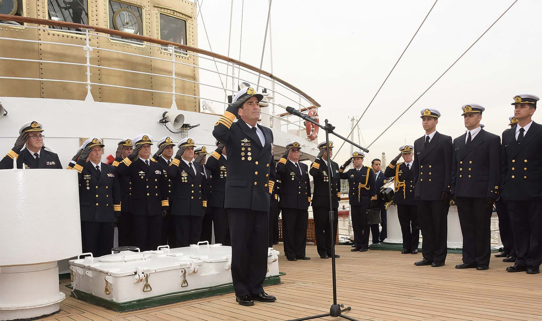 Finalmente, saludó a los familiares de los tripulantes y deseó buenos vientos al comandante de la unidad: “El Estado argentino, y particularmente la Armada, le confía a la promoción 154 para que usted complete su formación y puedan ser dignos oficiales de Marina. Descarto el cumplimiento y éxito de la misión”.