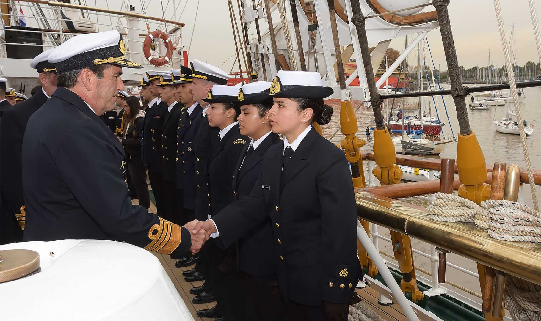 Dirigiéndose especialmente a los Guardiamarinas en Comisión, expresó: “Durante este viaje cumplirán tareas técnico-operativas y pondrán en práctica todos los conocimientos que han adquirido durante más de cuatro años en la Escuela Naval. Sean dignos herederos de los valores y principios que nos ha impuesto nuestro padre de la Patria en el mar, el Almirante Guillermo Brown. Aquí estaremos ansiosos por recibirlos a fin de año, seguros de que ustedes constituyen el futuro de la Armada”.