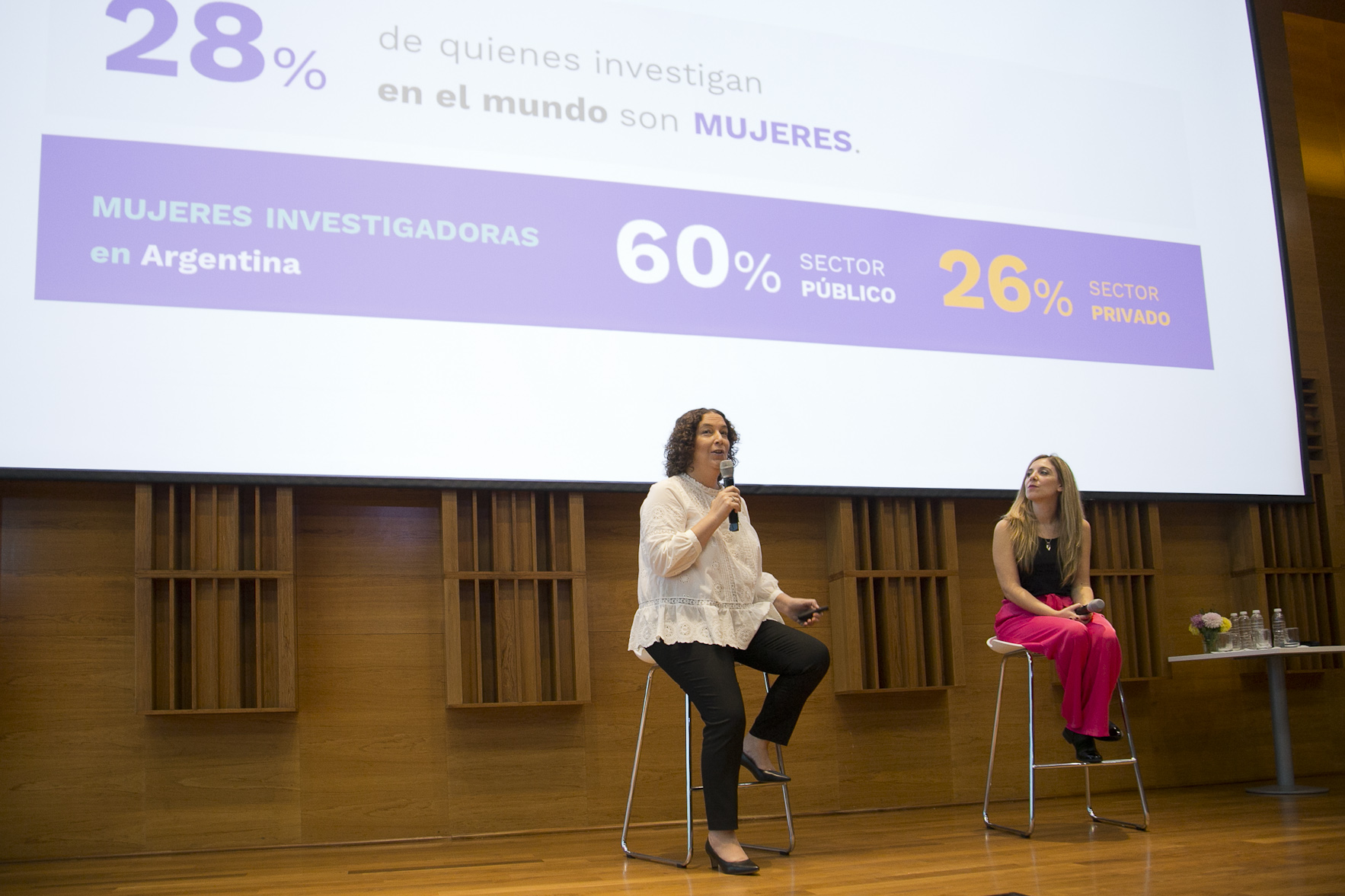 La directora Nacional de Programas y Proyectos de la Secretaría de Ciencia, Tecnología e Innovación productiva, Guillermina D´Onofrio, junto a María Victoria Tignino, consultora especializada en evaluación y análisis de información, presentó datos revelados por un diagnóstico de alcance nacional acerca de la brecha de género en el ámbito de la ciencia. D´Onofrio destacó distintas acciones de la Secretaría, como el Banco de acciones de género y ciencia; Estadísticas de género en ciencia, tecnología e innovación; y las Editatones, entre otras. En su disertación, expresó: “Cuando tenemos más datos, tenemos menos mitos y también tenemos más preguntas. Cuando uno tiene más datos comienza a preguntarse por otros aspectos de esa realidad que conoce, que es necesario explorar y seguir investigando para tomar buenas decisiones”, y agregó: “Cuando se tienen buenos datos, se pueden crear políticas que sean adecuadas a la realidad.”