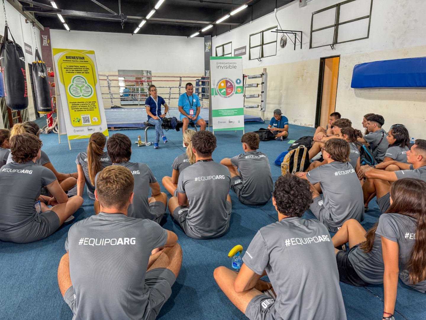En el gimnasio de boxeo, se desarrolló la charla de La Peque y del emblemático ex jugador de Los Murciélagos, Silvio Velo, donde los deportistas hicieron hincapié en la importancia de los comportamientos extra cancha. “Toda la vida me esforcé, me cuidé y esa actitud es la que marca la diferencia en el alto rendimiento. En los detalles, está la diferencia: en cómo dormís, en cómo te alimentas. Hay que dar un 110%”, subrayó Velo.