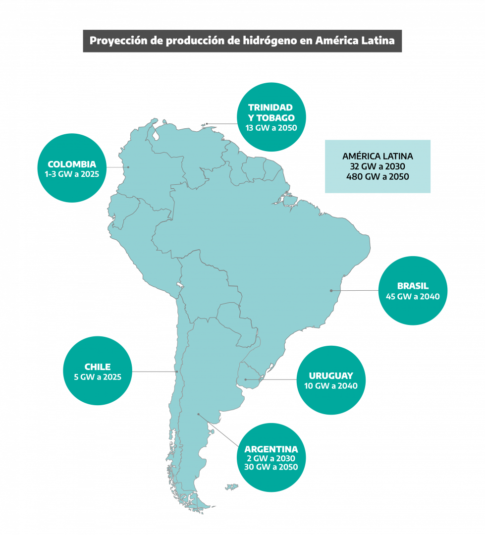 Argentina se plantea el objetivo de alcanzar una producción doméstica de hidrógeno de al menos 1 Mt en 2030 y 5 Mt a 2050. Para ello será necesario el desarrollo de proveedores locales radicados en el país que permitan dar respuesta a las necesidades de bienes de capital y servicios conexos en la cadena de valor para alcanzar un 50% de contenido nacional a 2050, y exportar al mercado regional.