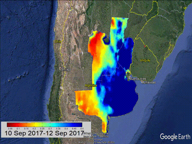 De esta manera, integrando en cada caso las pasadas que cubren todo el territorio de Sudamérica se pueden obtener dos mapas, uno matutino y otro vespertino. A continuación, se muestra la evolución del producto matutino en el periodo considerado.