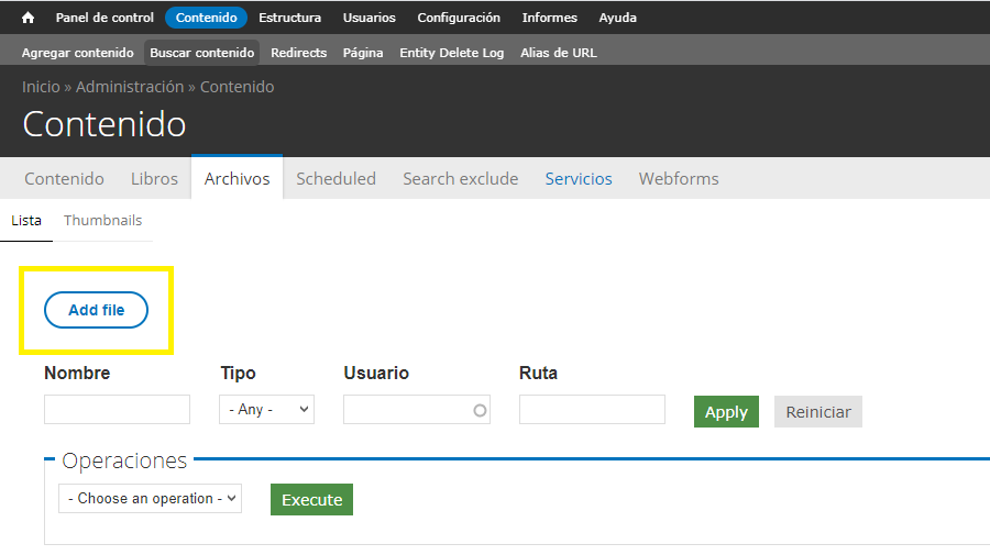 2. Entrá al back a Buscar contenido. Una vez allí, cliqueá en Archivos.