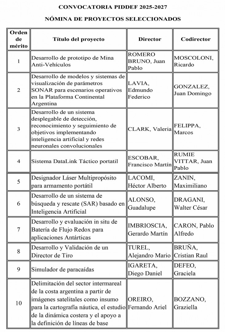 - Proyectos Seleccionados del a Convocatoria PIDDEF 2025