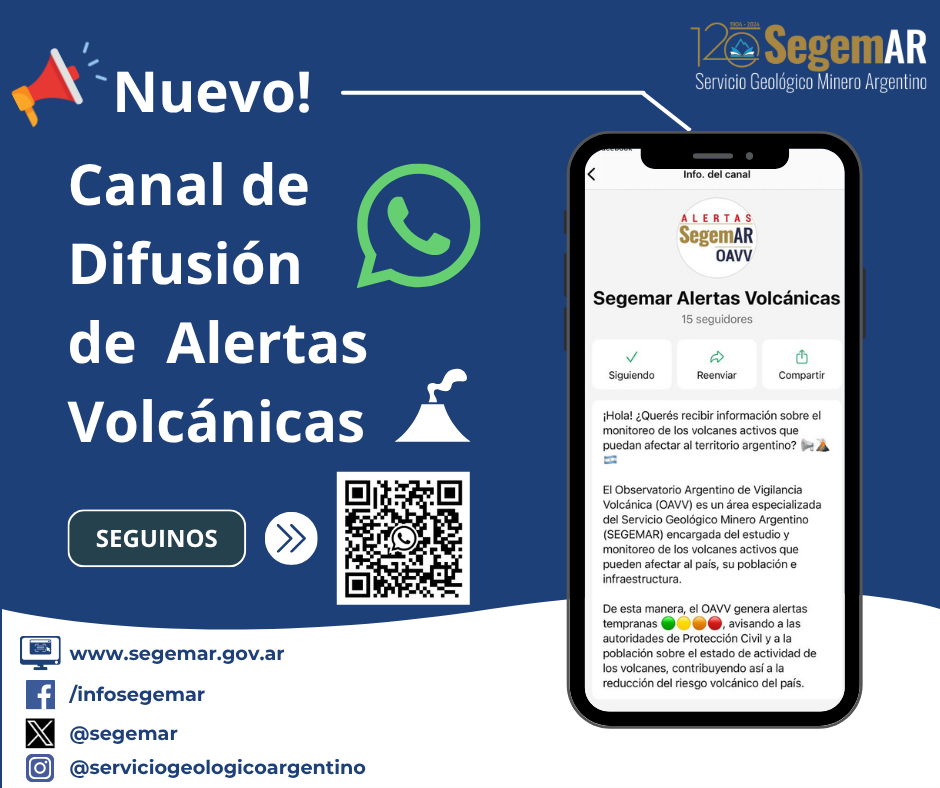 El SEGEMAR lanza su nuevo canal de Whatsapp para la difusión de alertas volcánicas en la Argentina .