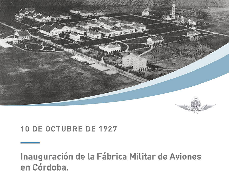 El 10 de octubre de 1927, se inauguró, en Córdoba, la Fábrica Militar de Aviones (FMA), actual Fábrica Argentina de Aviones “Brigadier San Martín” S.A., empresa dedicada a la producción de aeronaves y a la investigación aeroespacial.