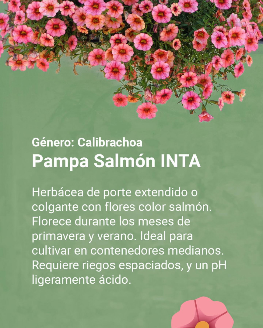 Pampa Salmón INTA surge de una selección realizada en 2004 a partir de una planta de Calibrachoa linearis de una población silvestre ubicada en el departamento Colón –Entre Ríos– por el color de la flor.