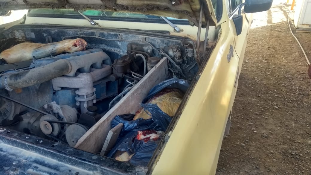 Decomiso de carne con hueso transportada en el motor de una camioneta