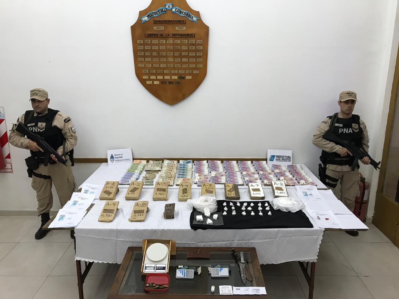 La Prefectura Naval Argentina detuvo a un hombre que circulaba por la ciudad de Concordia, provincia de Entre Ríos, con casi diez kilos de estupefacientes, entre cocaína y marihuana, y una importante cantidad de dinero en efectivo.
