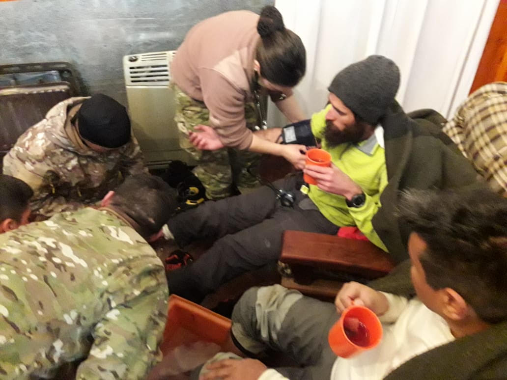 Es importante destacar que la rápida reacción de este elemento militar, en colaboración con otros efectivos de distintas fuerzas policiales y de rescate zonales, permitió el rescate de los extraviados sin ningún tipo de lesiones. Las once personas, inmediatamente después de ser ubicadas, fueron trasladadas hasta el refugio de montaña que posee la compañía y en esa instalación fueron atendidas por el personal militar de Sanidad que presta servicios en la subunidad.