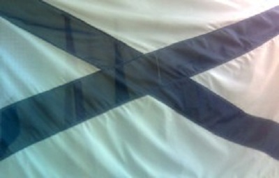 A bordo se encontraban varias banderas que sobre un fondo blanco tenían en forma diagonal una cruz azul (colores inversos a la bandera de Escocia), que era usada por los buques de guerra de aquella nación.