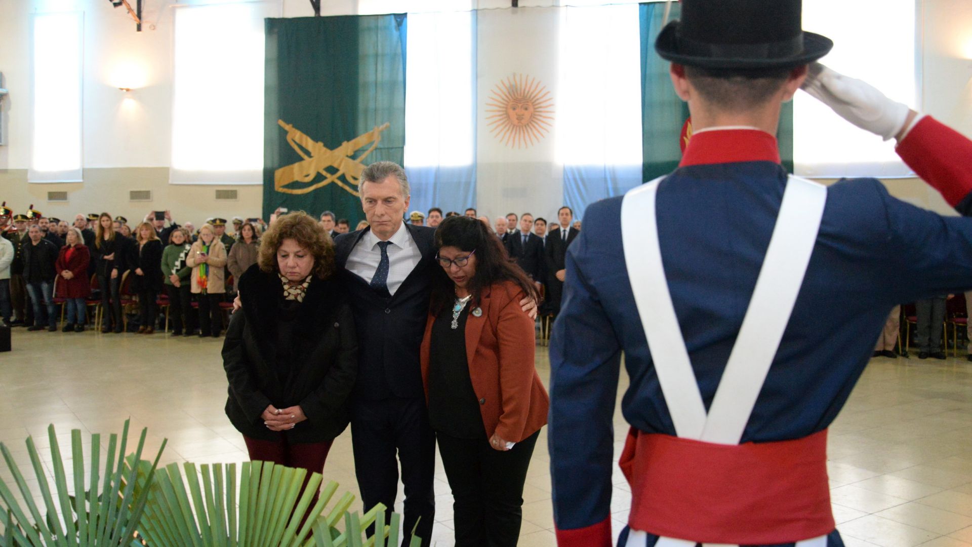 Lo hicieron el señor presidente de la Nación acompañado por Jovina Luna, hermana de soldado Hermindo Luna y Alejandra Masaferro, hermana del subteniente Masaferro por su parte, el ministro de Defensa, Oscar Aguad, hizo lo propio acompañado por el jefe del estado Mayor Conjunto, teniente general VGM Bari del Valle Sosa y el jefe del Ejército, teniente general Claudio Pasqualini.