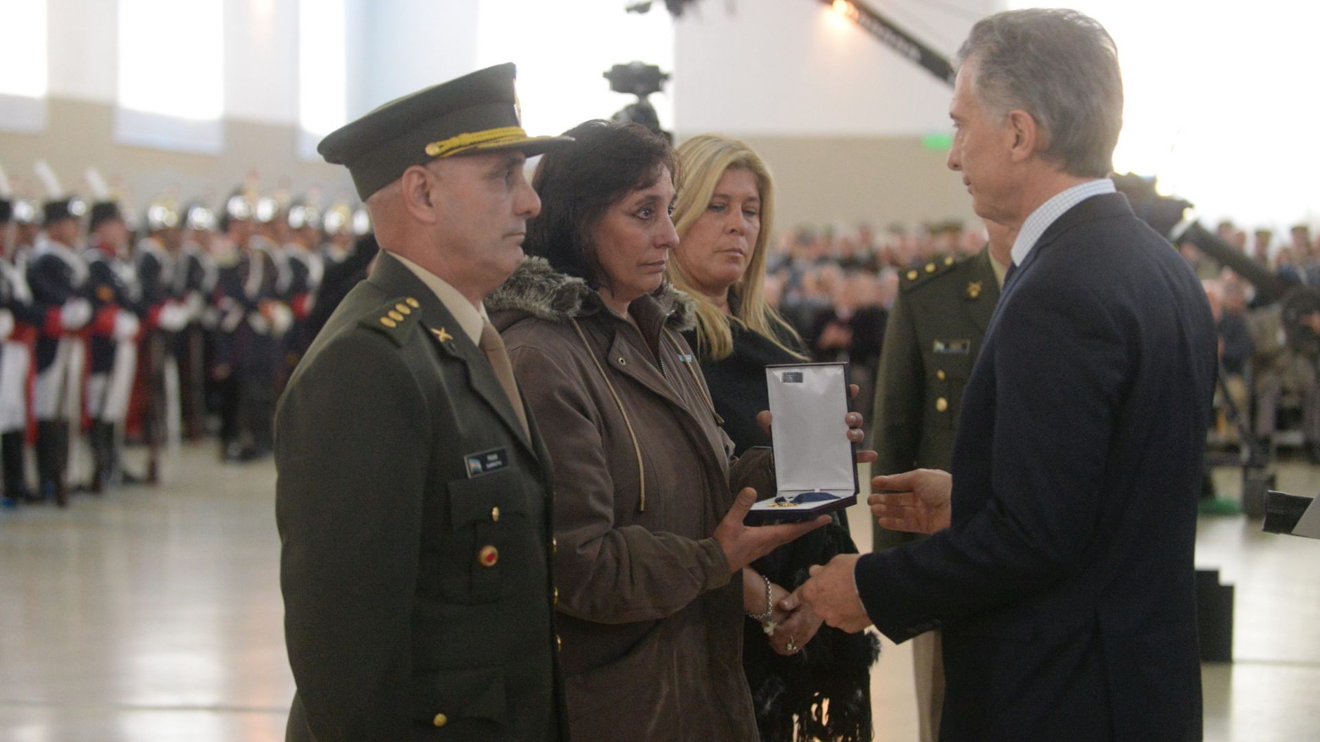 Luego, el presidente de la Nación entregó, junto con el jefe del Ejército, la Orden a los Servicios Distinguidos al Mérito Civil a los familiares de soldados caídos en cumplimiento del deber, acontecido durante periodos democráticos, siendo ellos el: mayor (post mortem) Miguel Paiva, teniente primero (post mortem) Juan Gambandé, sargento ayudante (post mortem) Aldo Linares, sargento (post mortem) Bruno Rojas, cabos (post mortem) Héctor Cardozo, Leonardo Díaz, Domingo Grillo y René Papini, caídos en cumplimiento del deber militar.