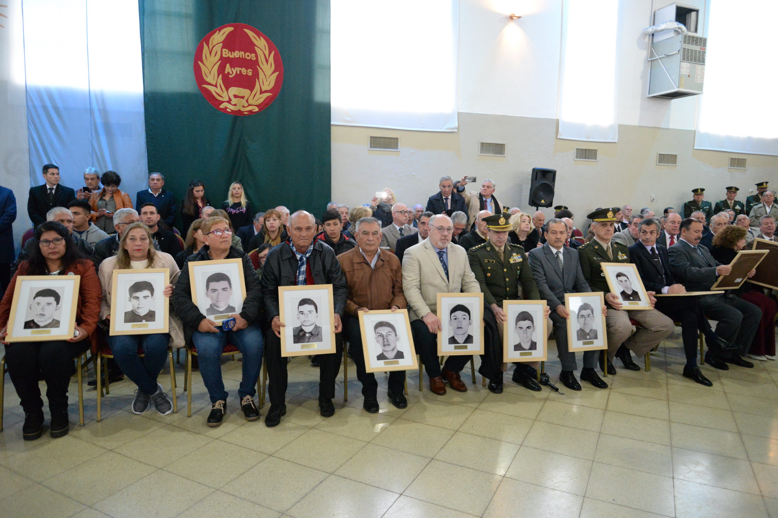 Durante el acto se rindió homenaje a los doce militares (1 oficial, 1 suboficial y 10 soldados conscriptos) muertos el 5 de octubre de 1975, durante la defensa del Regimiento de Infantería de Monte 29 cuando fue atacado por una columna de la organización Montoneros, durante el gobierno constitucional de María Estela Martínez de Perón.
