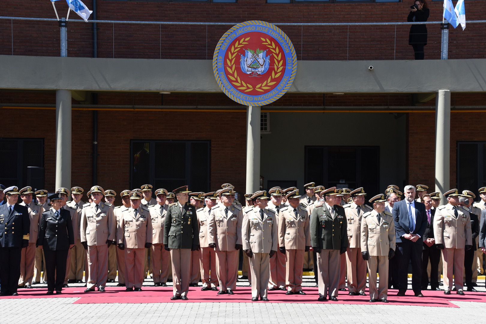 El emotivo acto también contó con la participación del Subprefecto Nacional Naval, prefecto general Hugo Ilacqua y la plana mayor de nuestra institución, acompañados por el jefe del Estado Mayor General del Ejército, teniente general Claudio Ernesto Pasqualini, el Director Nacional de Gendarmería Nacional, comandante general Gerardo José Otero; del doctor Miguel De Lezica, descendiente de Thompson, y los directores de los Museos Histórico Nacional, de Armas de la Nación, de Casa Rosada, entre otras autoridades.