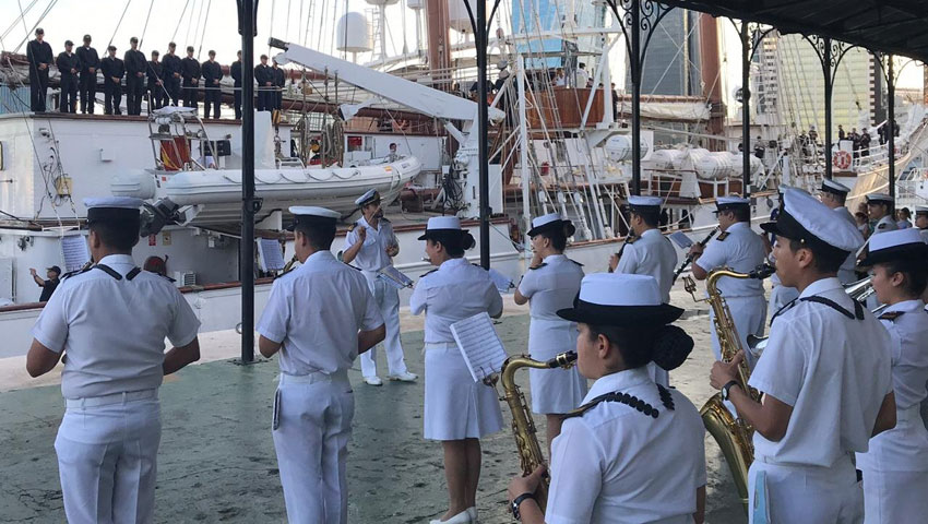 De la despedida participaron autoridades navales y residentes españoles, acompañados por la Banda de Música de la Armada Argentina.