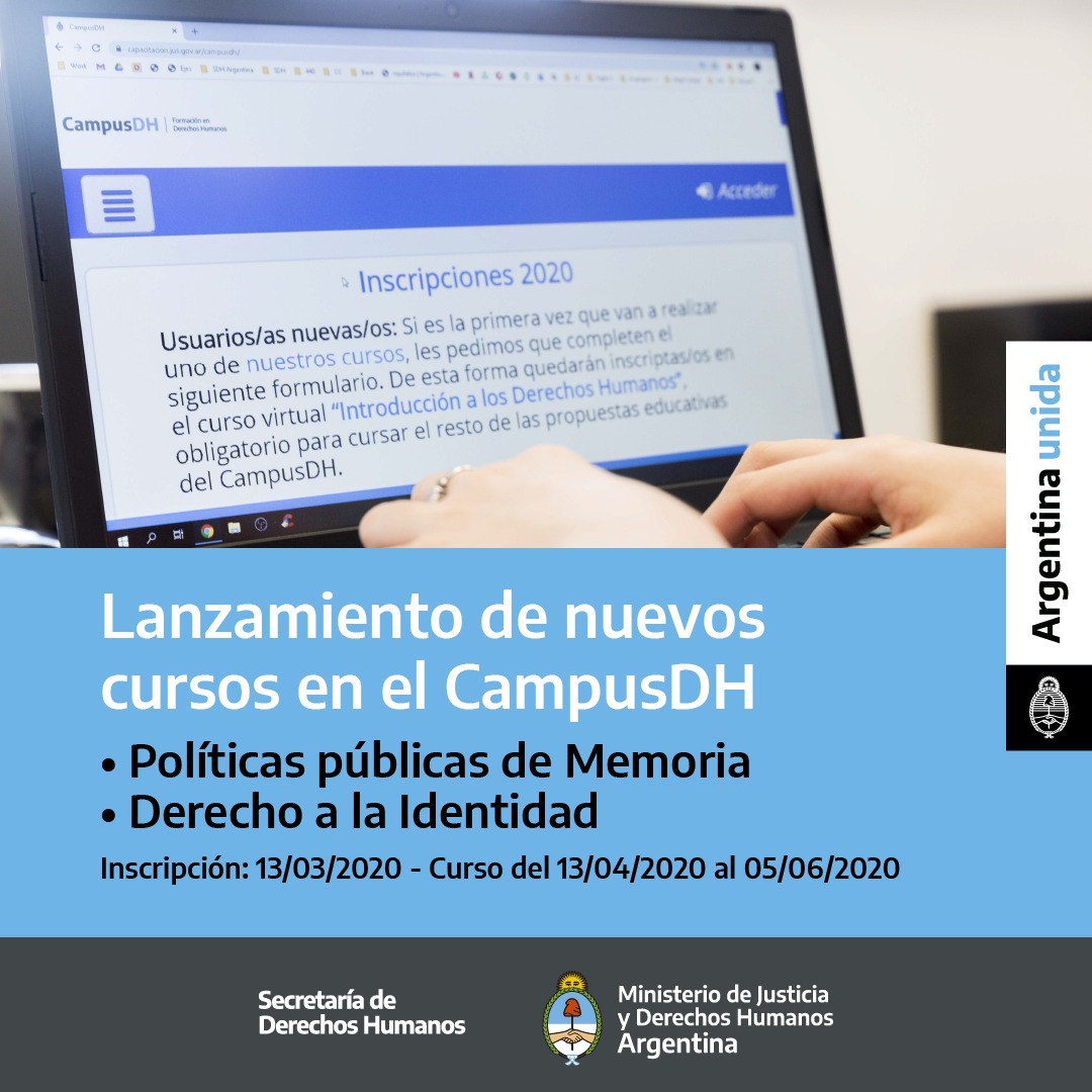 La oferta incluye siete cursos, entre los que incorporaron dos nuevas propuestas: “Políticas públicas de Memoria” y “Derecho a la identidad”. Los mismos son abiertos al público en general y la modalidad de cursada es virtual con tutoría.