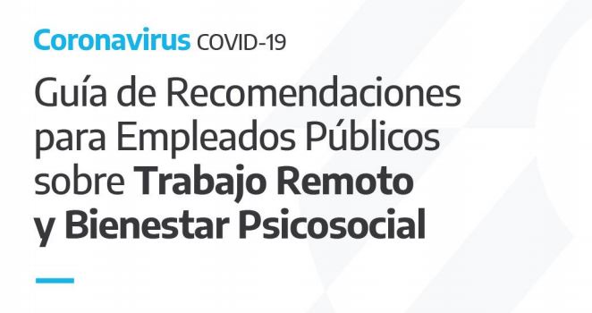Te invitamos a consultar la “Guía de recomendaciones para empleados públicos”, orientada a facilitar la implementación de la modalidad de trabajo remoto, en el marco de la Emergencia Sanitaria declarada a nivel Nacional y Mundial.