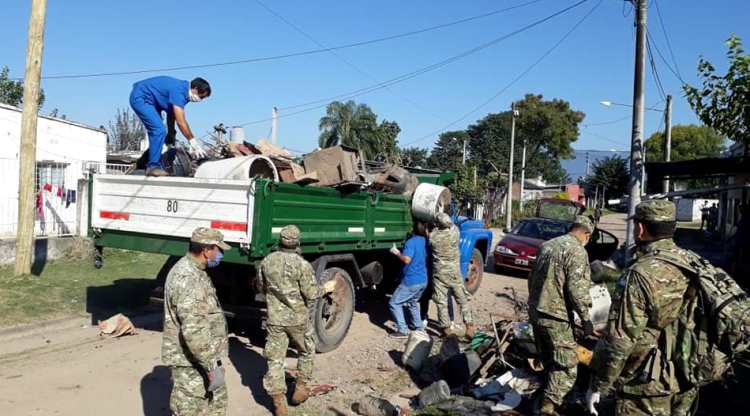 En la provincia de Salta, las tropas de la Vta Brigada de Montaña, se encuentran trabajando en la ciudad capital, abocándose principalmente en el retiro y traslado de material, luego de las tareas de descacharramiento y desmalezamiento que lleva a cabo el gobierno local.