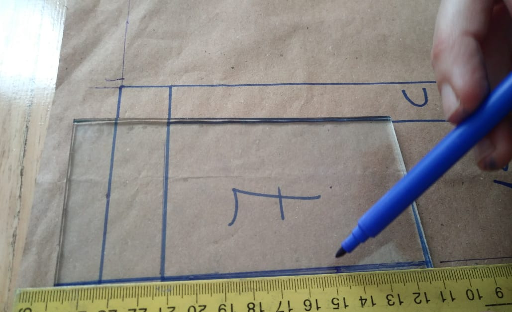 Una parte importante es trasladar el diseño de cada figura al vidrio.Si son transparentes se puede realizar directamente desde el molde original. Si son opalescentes u oscuras se puede realizar una copia del diseño original y recortar el fragmento de papel correspondiente a cada figura, para utilizarlo a manera de plantilla sobre el vidrio a cortar.