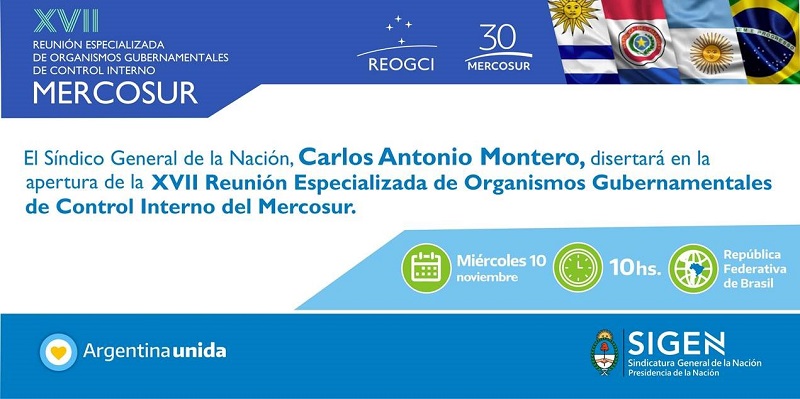 El Síndico General de la Nación, Carlos Antonio Montero, disertará en la apertura de la XVII Reunión Especializada de Organismos Gubernamentales de Control Interno del Mercosur (REOGCI), que organiza la República Federativa del Brasil.