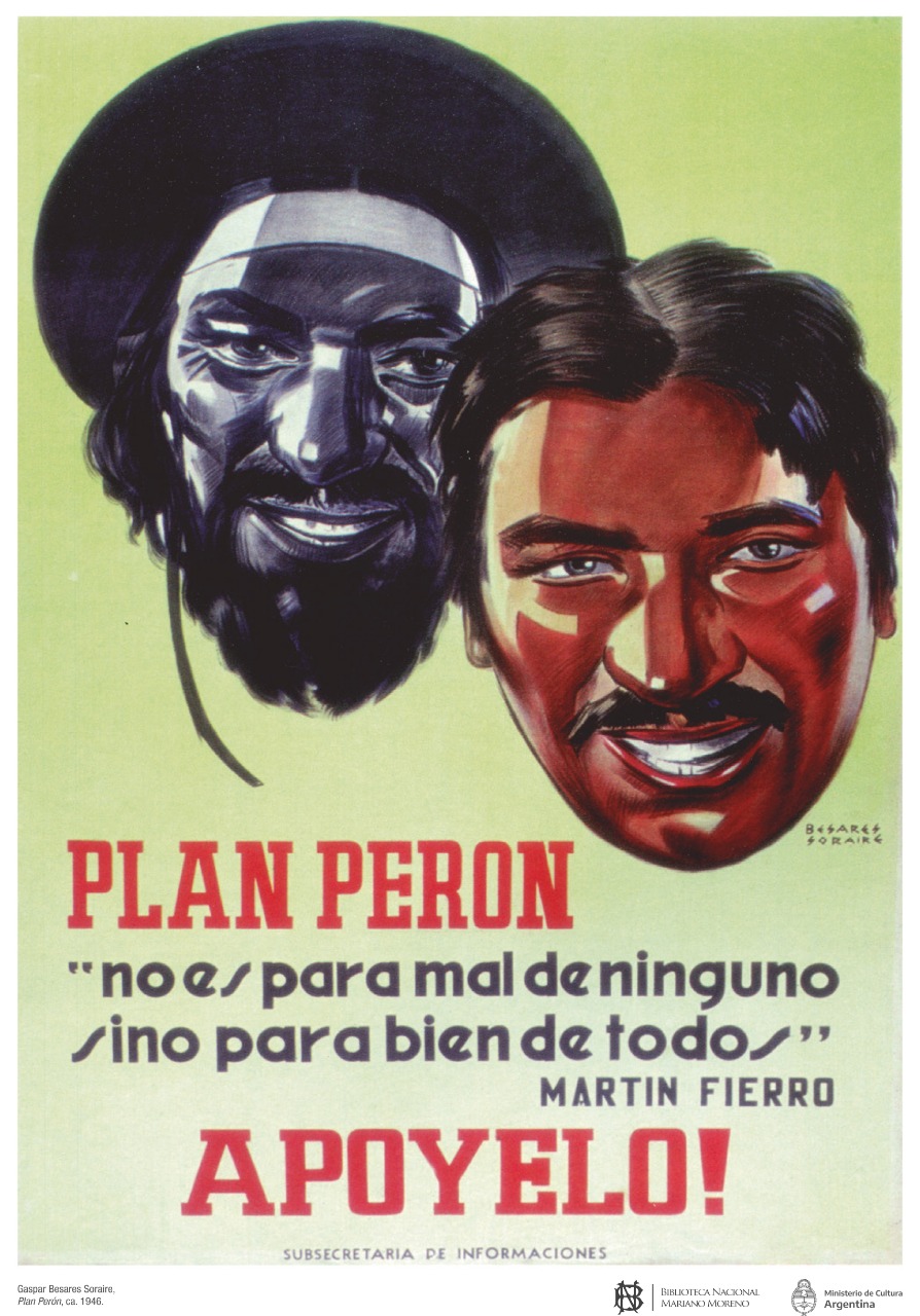 -Quienes la visiten van a poder encontrar cosas muy lindas. Desde una Pulpería musicalizada con Jorge Cafrune, afiches originales de cine, hasta un manuscrito original de Perón de 1911, en el que redactó un poema campero cuando todavía era cadete militar, a los 16 años. Van a encontrar el original, también manuscrito, de Don Segundo Sombra de Ricardo Güiraldes y una gran cantidad de folletos criollistas que se vendían a precios populares en las calles entre fines del Siglo XIX y por lo menos mediados del XX. Se van a poder llevar posters, postales y folletitos con versos gauchescos, todo con reproducciones de ilustraciones que hacen referencia a los distintos ejes de la muestra: la gauchesca del siglo XIX, el anarquismo, el peronismo, los payadores, etc. Van a poder apreciar además ilustraciones originales y acuarelas de grandes ilustradores de la historieta gauchesca como Raul y Guillermo Roux. Hay un poco de todo, la idea es poder llevarse una noción general de la historia del género y alguna reflexión sobre el mito, a través de una hermosa puesta visual que es fruto del gran diseño de Maia Kujnitsky. Por último, por solo mencionar algo, en la propia Pulpería los y las visitantes van a poder leer el catálogo papel de la muestra, donde un poco de todo esto se cuenta en mayor detalle. Quienes quieran adquirirlo pueden hacerlo en la propia Biblioteca Nacional a un precio muy accesible (al costo), o bien descargarlo de forma gratuita en la sección "Descarga", al final del artículo.