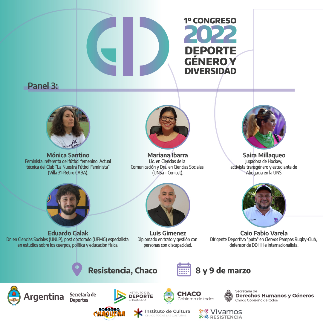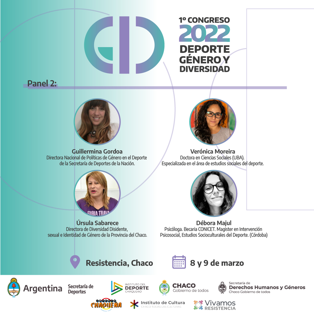 Este encuentro es el primero que aborda al deporte en clave de género en el país por lo que contará con relevantes panelistas que analizarán al deporte y sus instituciones desde una perspectiva de género y diversidad. Participarán de este Congreso, Mónica Santino, Caio Fabio Varela, Leticia Brunati, Paula Aberastegui, Maia Moreira, Verónica Capetta, Marta Pereyra, Verónica Moreira, Úrsula Sabarece, Débora Majul,Mariana Ibarra, Eduardo Galak, Luis Giménez y la senadora María Inés Pilatti Vergara.