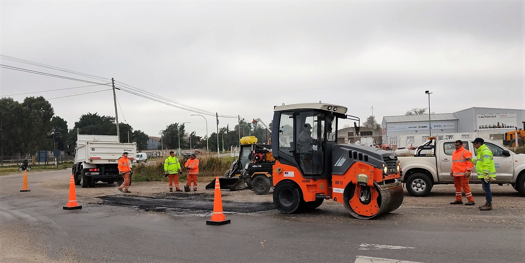 El Ministerio de Obras Públicas, a través de Vialidad Nacional, ejecutó trabajos de bacheo profundo en la rotonda de intersección de la RN3 y la avenida Colón en el acceso a Bahía Blanca.