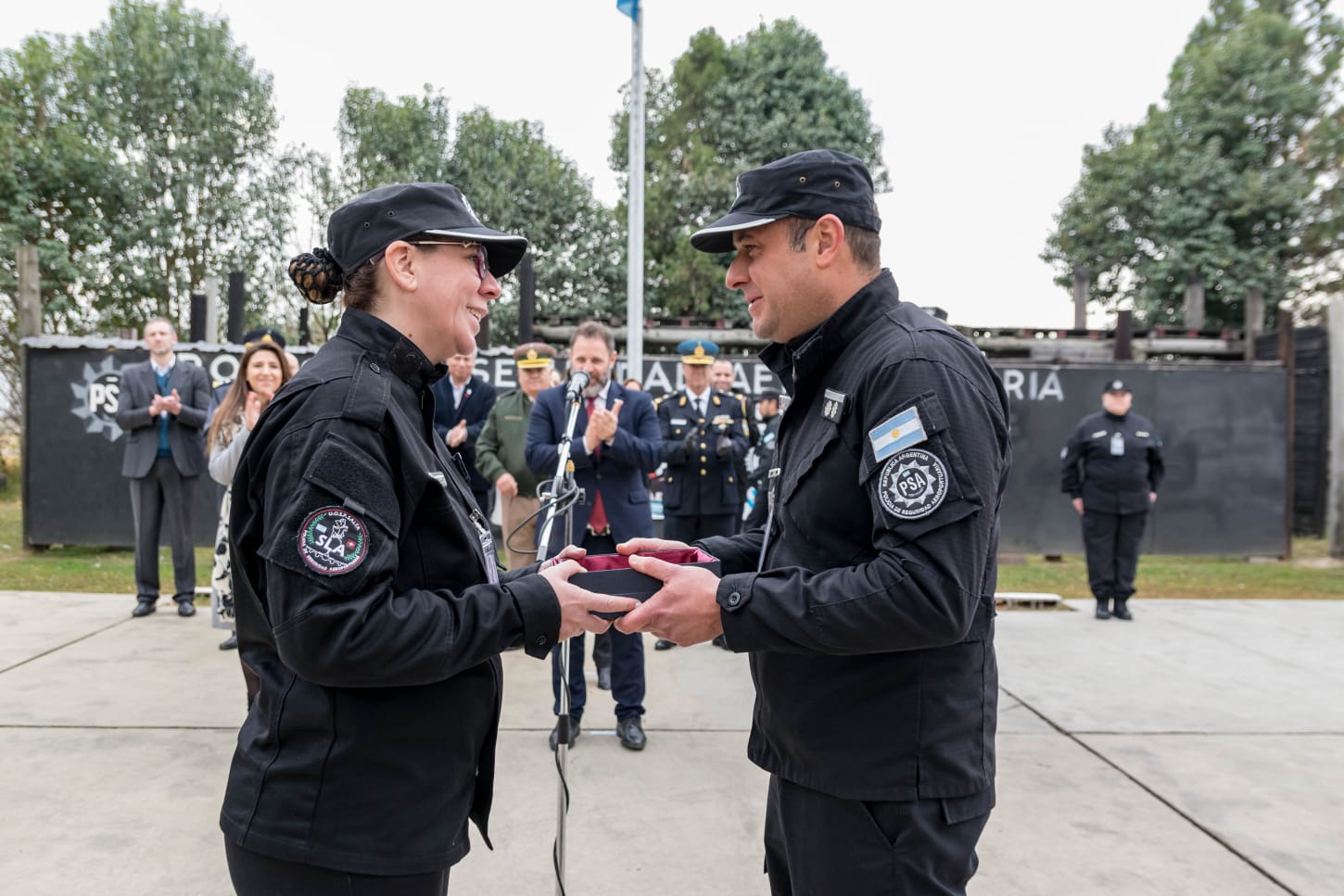 Glinski también reconoció a la nueva jefa de Operaciones, oficial jefe Iris Mancini: “Cuando la convocaron para cumplir una tarea esencial dentro de la unidad, y a meses de poder retirarse, eligió seguir entregando parte de su vida no solo por la PSA sino en nombre del Estado Argentino. Me emociona saber que una mujer -y no es casual elegirlas para puestos de responsabilidad- que tiene su carrera hecha, que no tiene ninguna necesidad inmediata de moverse 2.000 km para desarrollar esta función, lo hace entusiasmada y con mucho orgullo”.