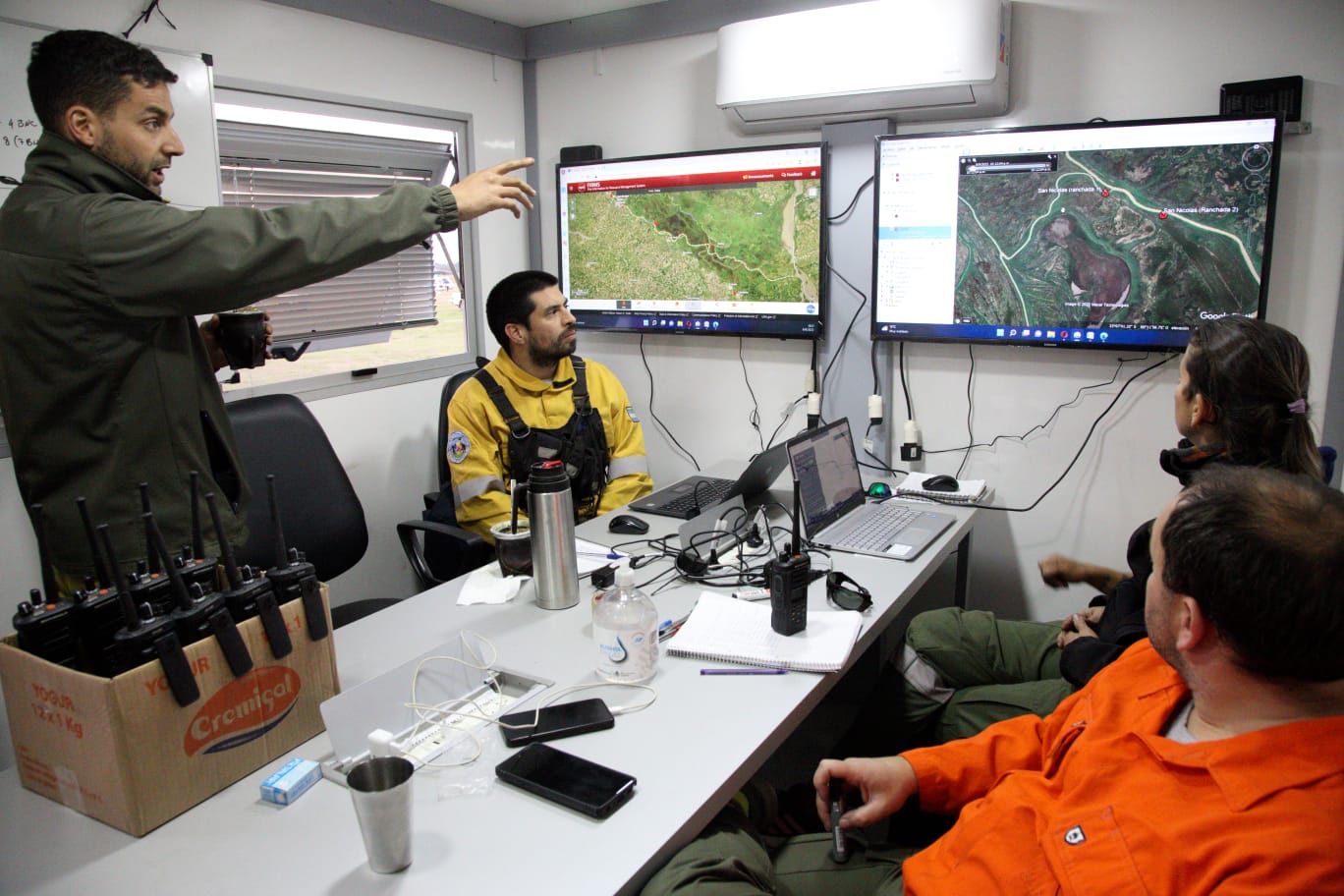 Asimismo, fueron convocados por el SNMF más de 100 brigadistas y personal de apoyo afectado al combate de incendios, pertenecientes a la Brigada Nacional Sur y Centro, Parques Nacionales y la provincia de Buenos Aires. En la Base de Operaciones de San Pedro se encuentra en funciones el Camión Comando de Emergencia (COE). Además, se brinda apoyo técnico con pronóstico meteorológico para planificación.