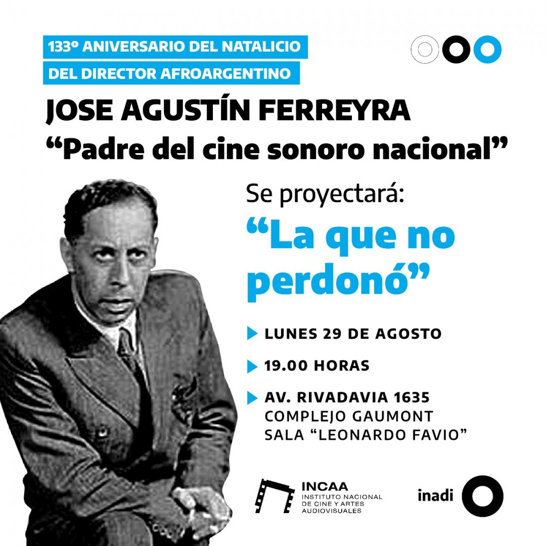 La Comisión para el Reconocimiento Histórico de la Comunidad Afroargentina del Instituto Nacional contra la Discriminación, la Xenofobia y el Racismo (INADI) en conjunto con el Instituto Nacional de Cine y Artes Audiovisuales (INCAA) presentarán una copia remasterizada de La que no perdonó, de José Agustín Ferreyra, en homenaje al director argentino afrodescendiente al cumplirse el 28 de agosto un nuevo aniversario de su nacimiento.