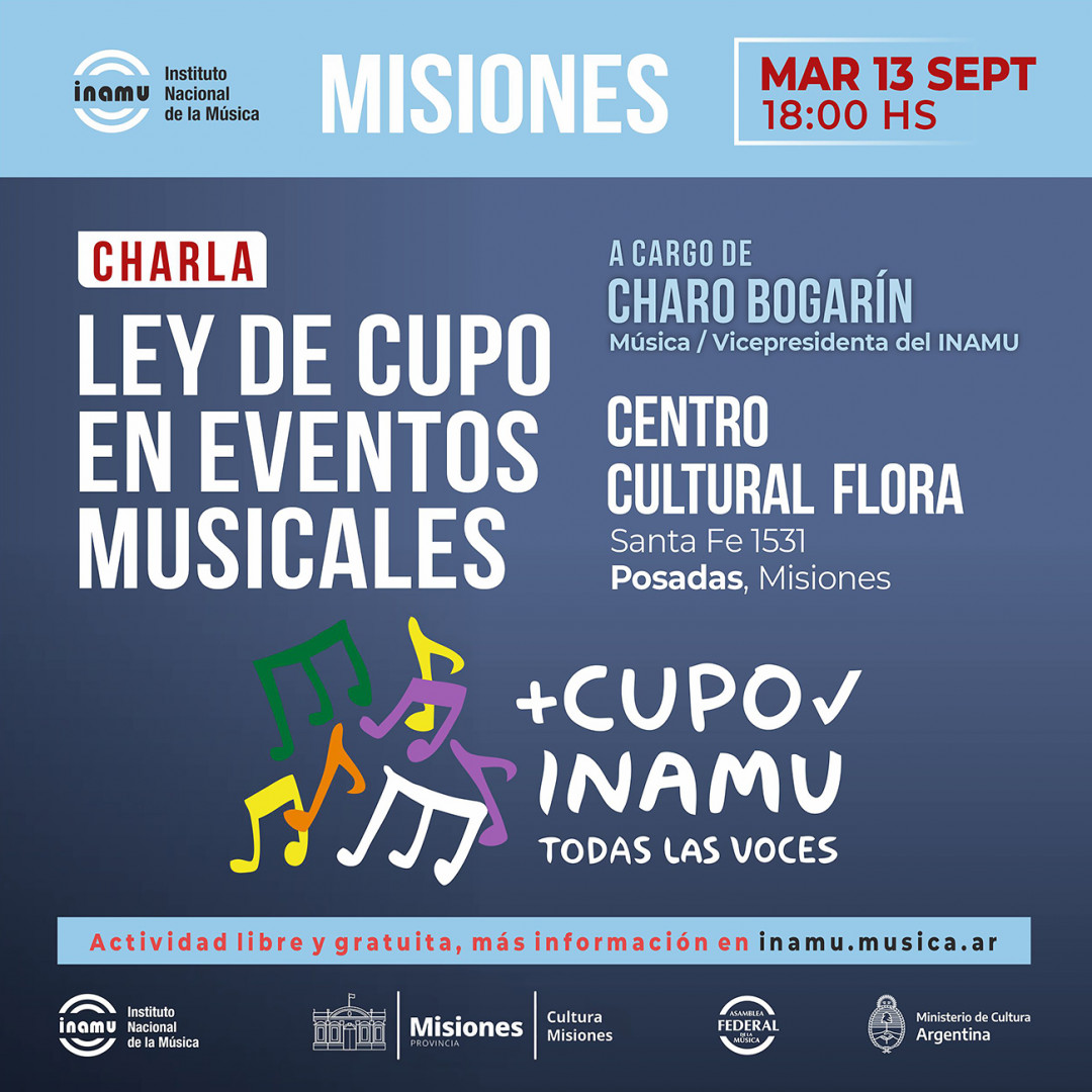 Esta charla está organizada por el INAMU y la Secretaría de Estado de Cultura de Misiones.