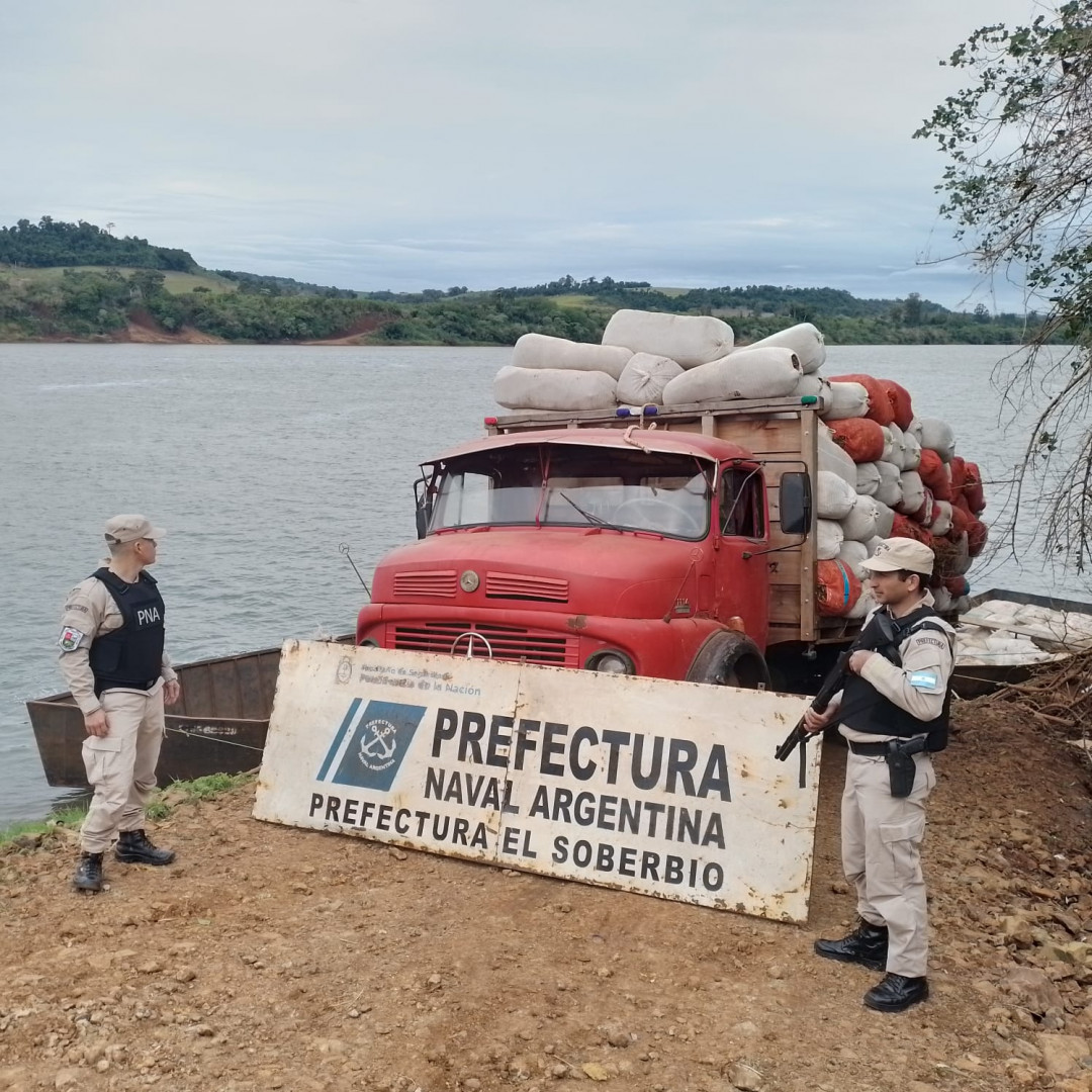 Efectivos de la Prefectura Naval Argentina secuestraron un cargamento de 11 toneladas de tabaco y granos de soja, que pretendían ser exportadas de manera ilegal, desde la costa de El Soberbio, provincia de Misiones, hacia Brasil.