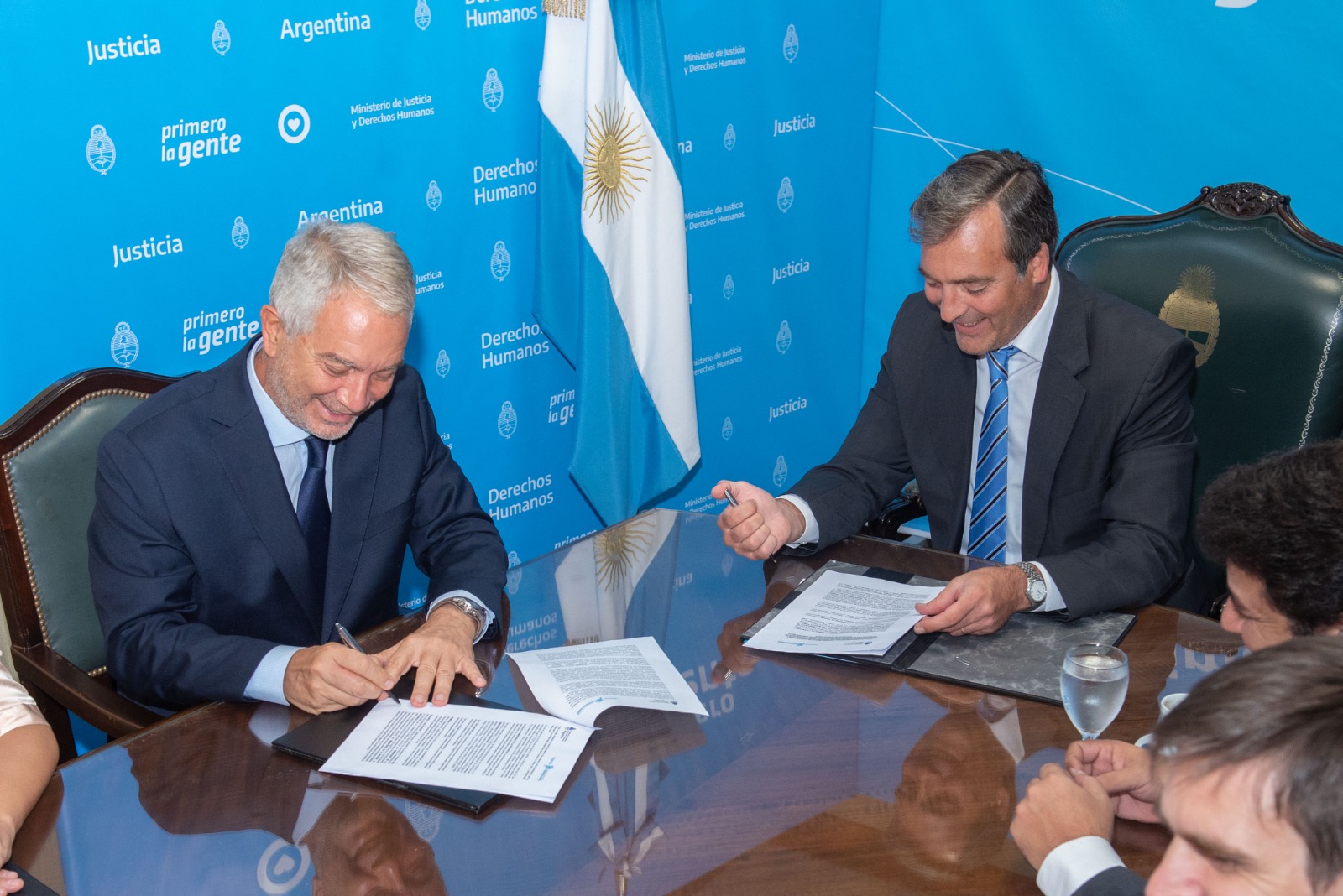 El encuentro tuvo lugar en la sede central del Ministerio de Justicia y Derechos Humanos de la Nación y participó también la titular de la Unidad de Gabinete de Asesores del Ministerio de Justicia y Derechos Humanos, Gimena del Río.
