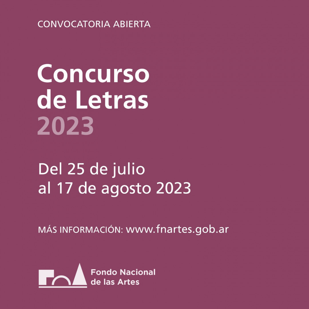 El Fondo Nacional de las Artes, organismo del Ministerio de Cultura de la Nación, abre la convocatoria para el Concurso de Letras 2023 con el fin de fomentar, reconocer y premiar la creación de obras literarias de diferentes géneros: Cuento, Novela, Novela Gráfica, Ensayo/No Ficción (Crónica, Biografía, Memorias, Reportajes, etc.) y Poesía. Por cada categoría habrá tres premios: $350 mil (Primer Premio), $250 mil (Segundo Premio), $200 mil (Tercer Premio).