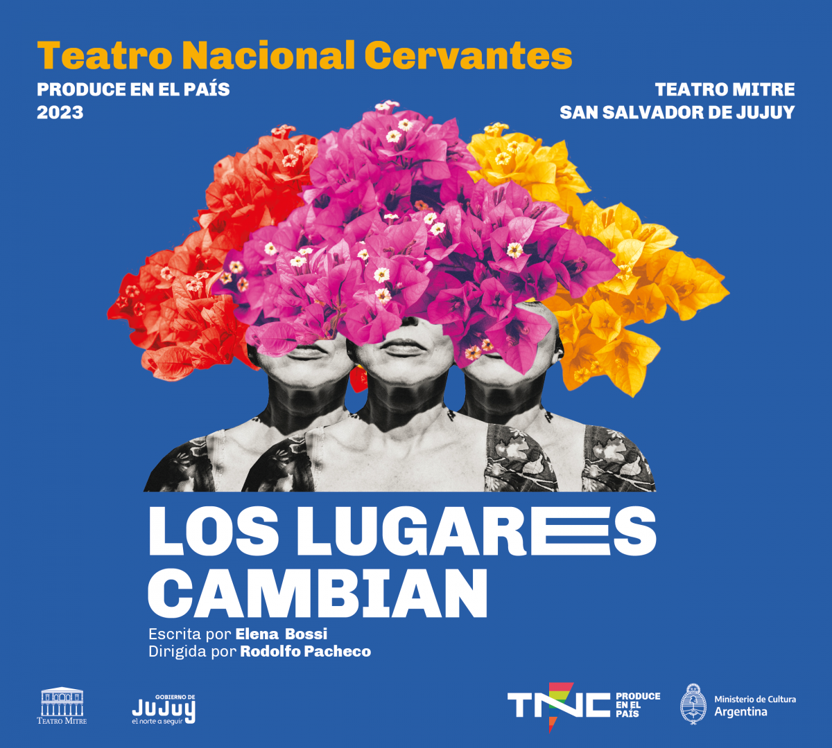 "Los lugares cambian", irigida por Rodolfo Pacheco y escrita por Elena Bossi, a las 21 h en la sala Mayor del Teatro Mitre, Alvear 1009, San Salvador de Jujuy. El elenco está integrado por María del Carmen Echenique, Noemí Salerno, Silvia Gallegos, Roberto Cruz, Tupac Pelaez y Ezequiel Boris. TNC-Produce en el país es un programa que promueve el desarrollo de artistas locales en diferentes ciudades de la Argentina para que formen parte de la programación del Teatro Nacional Cervantes más allá de su sede central.