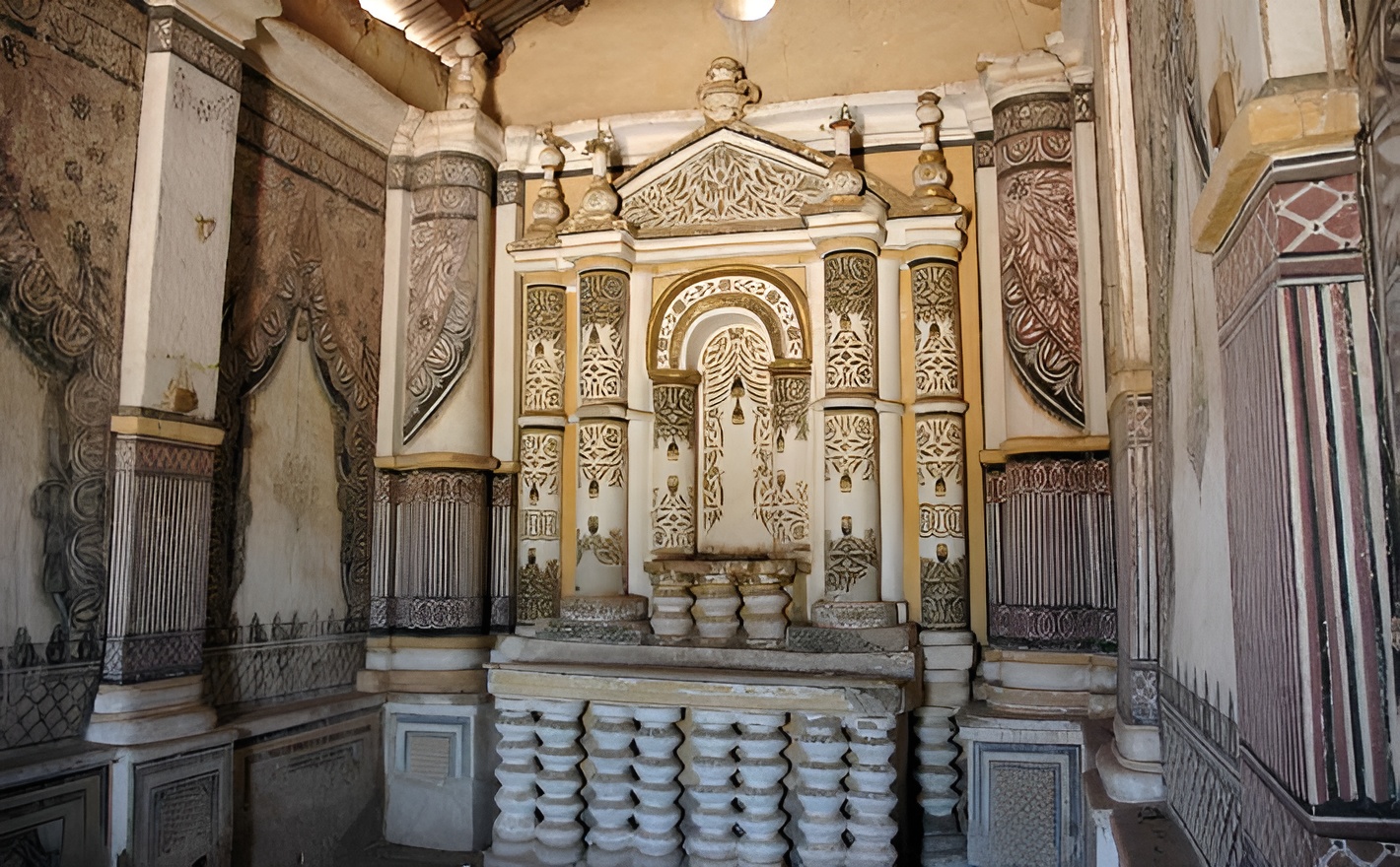 Su fachada italianizante es uno de los ejemplos más significativos del Noroeste argentino. Las paredes interiores están profusamente cubiertas con notables pinturas murales sobre so- porte de barro –en ocres, blanco y negro–, con figuras que destacan el basamento y los contrafuertes y exhiben falsos cortinados con candelabros colgantes; éstas se integran al retablo ornamentado con semicolumnas, frontis, arcos y pináculos, que posee una singular base de eslabones superpuestos de cerámica.